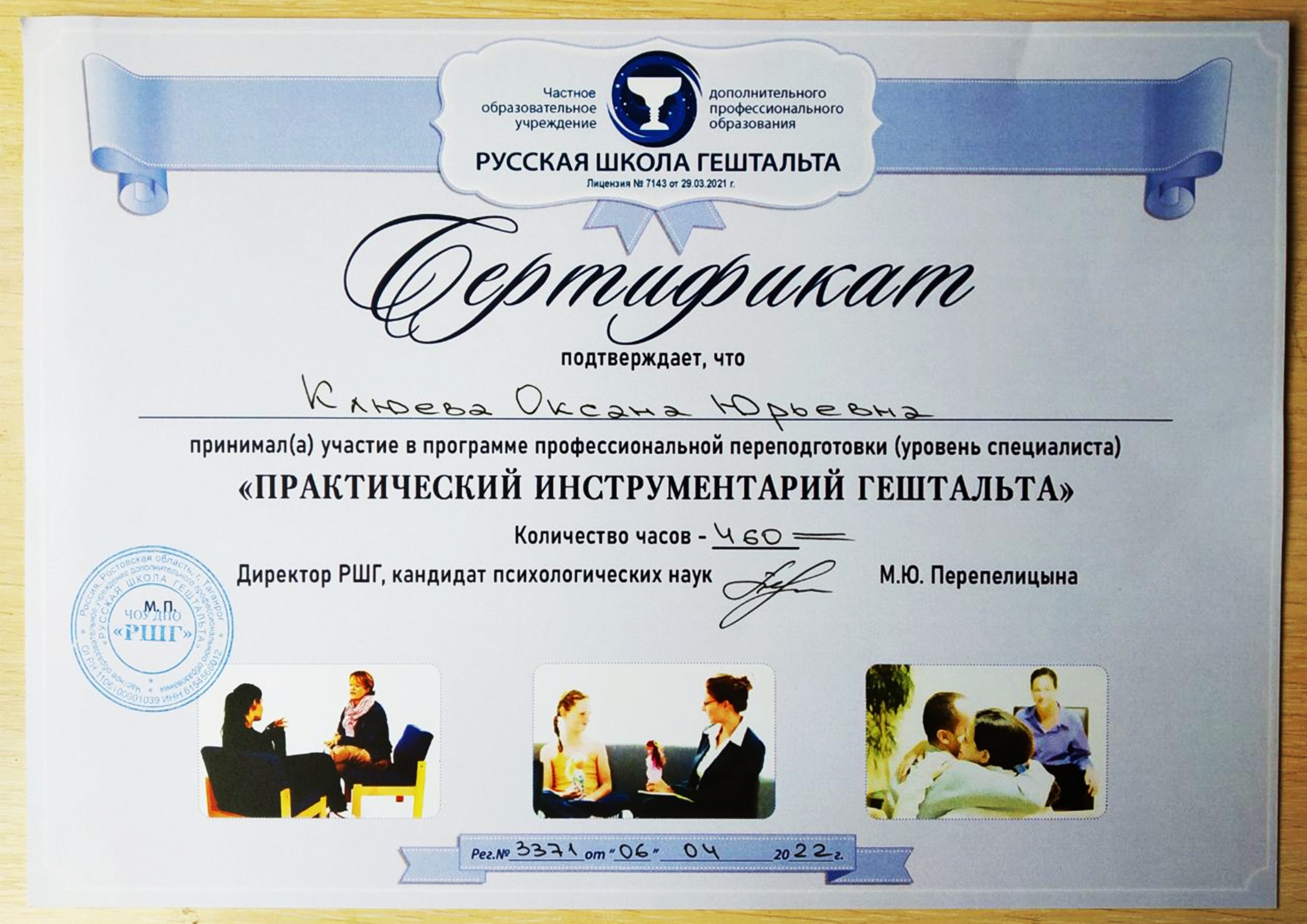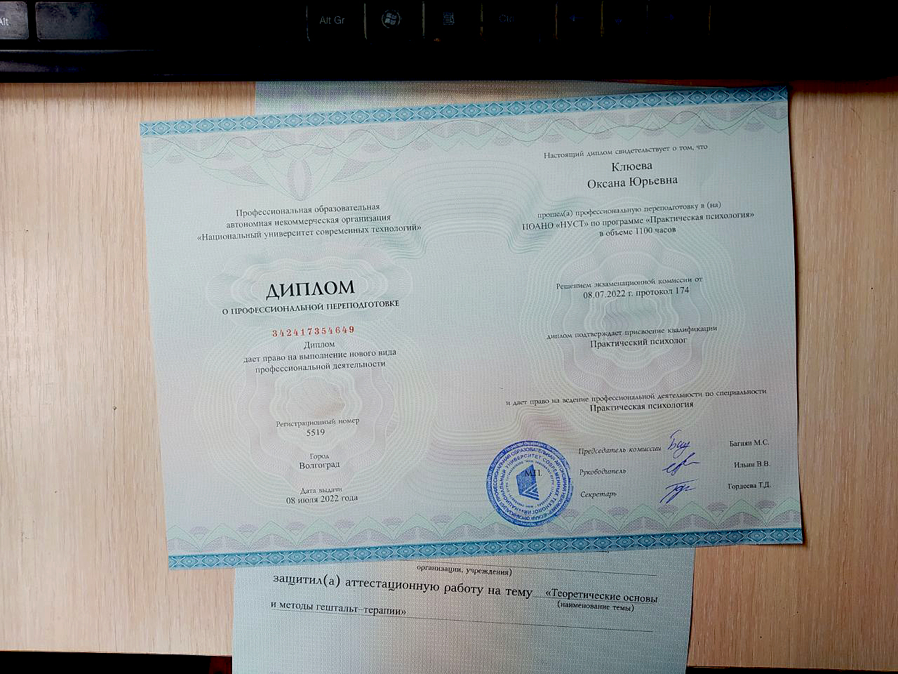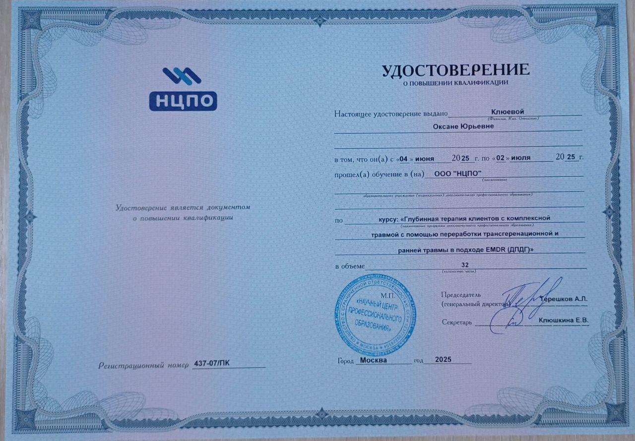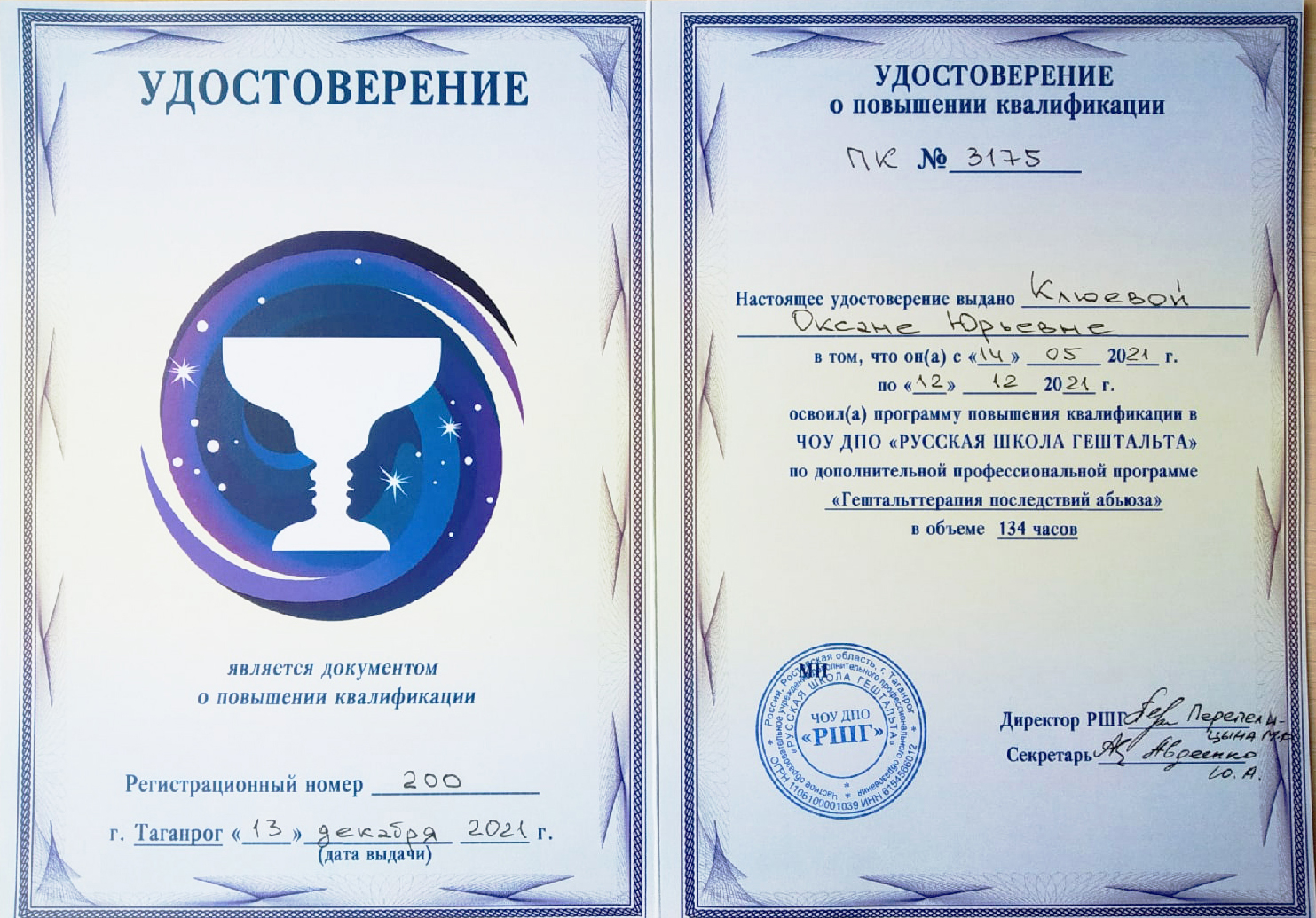 (EMDR и ImTT-терапевт, Гештальт-терапевт, Член международной ассоциации психологов)