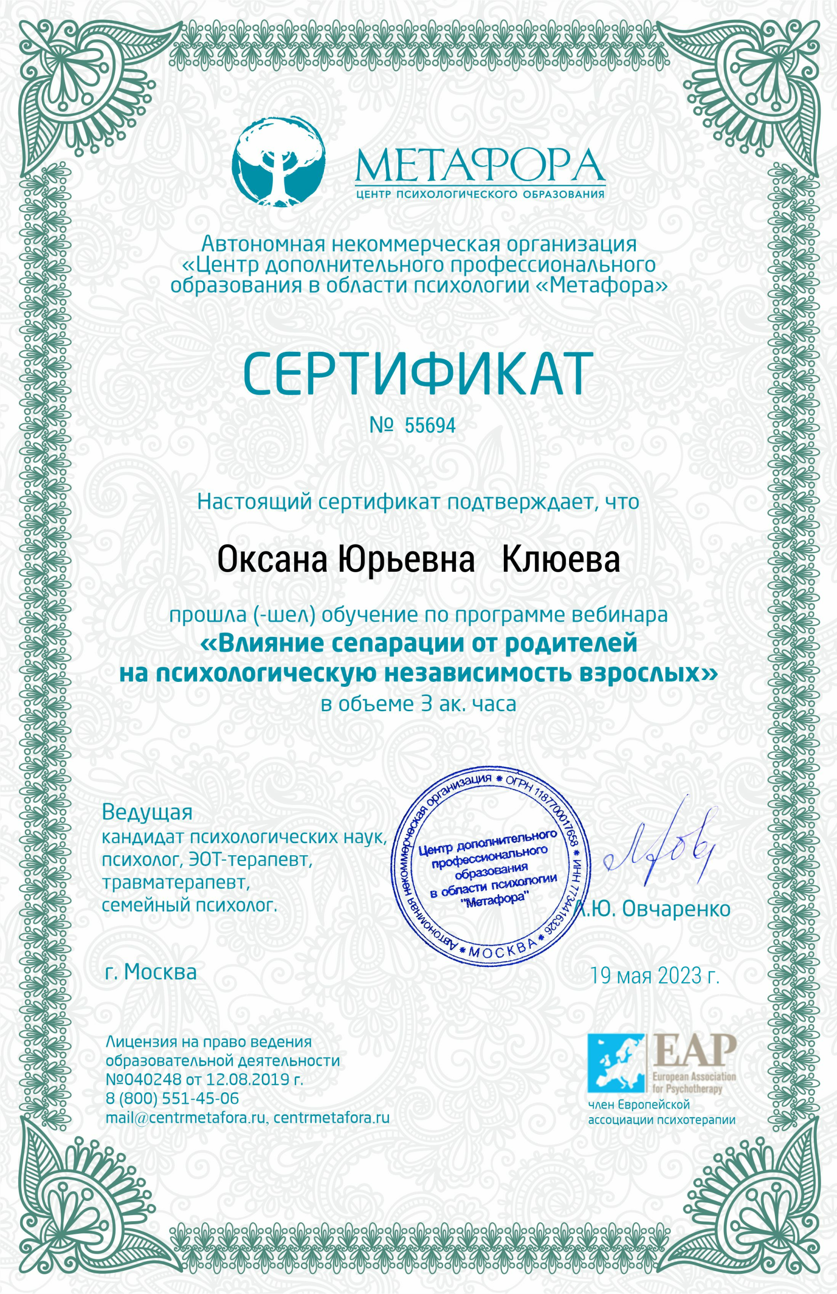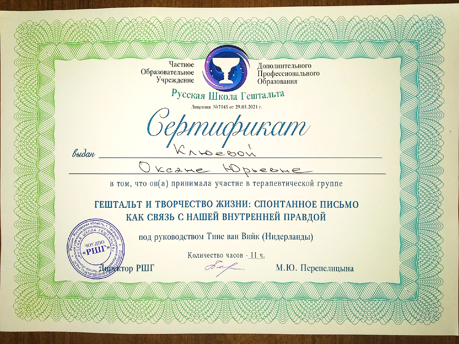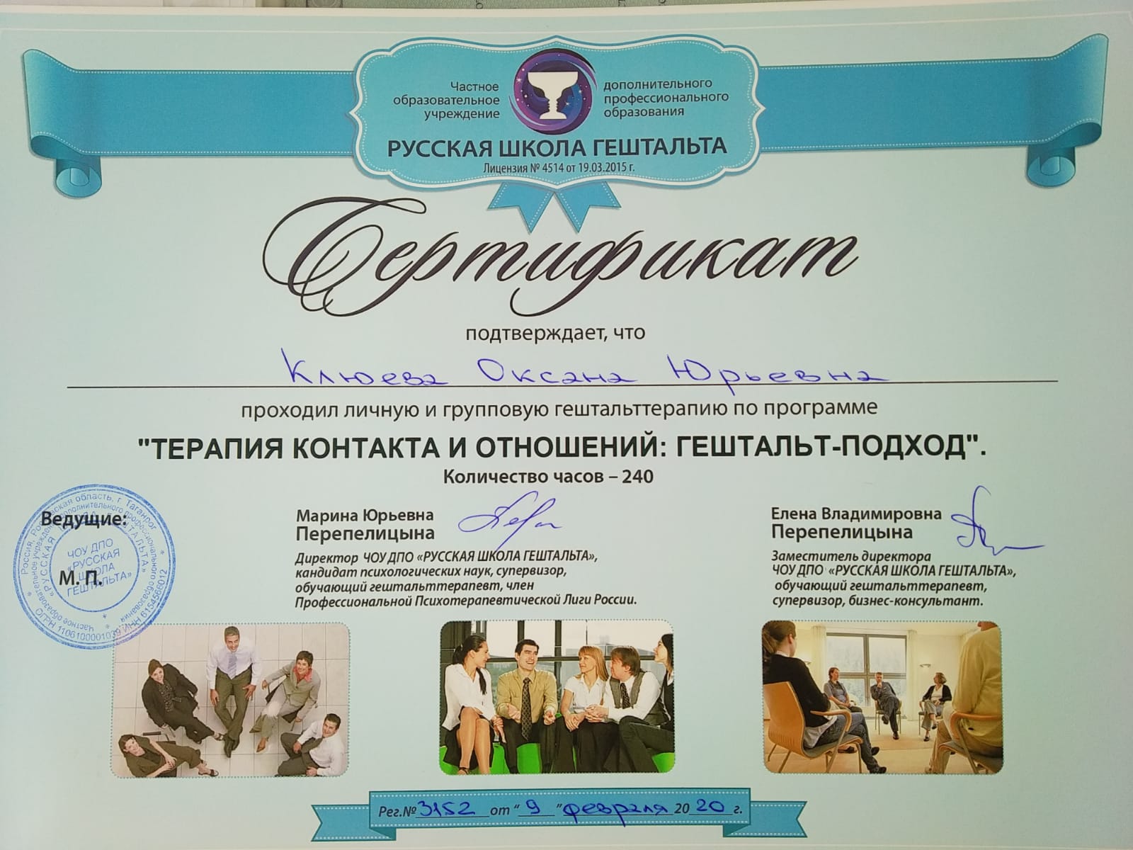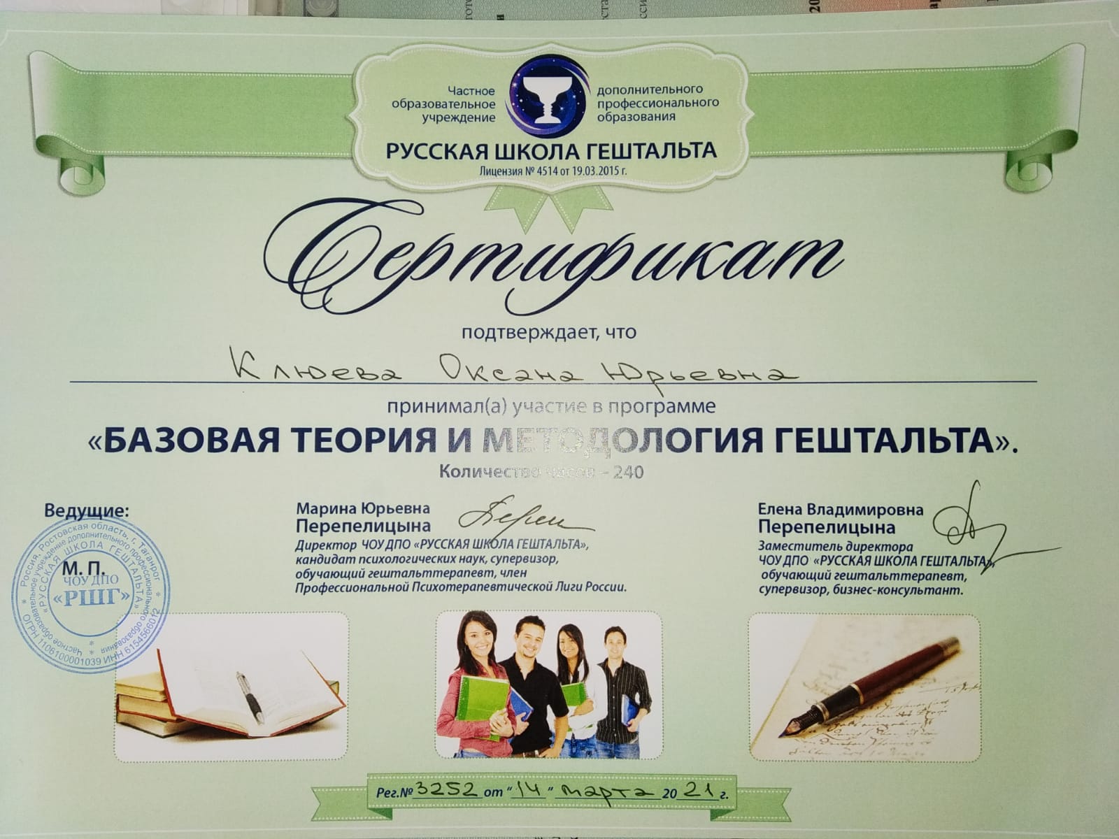 (EMDR и ImTT-терапевт, Гештальт-терапевт, Член международной ассоциации психологов)